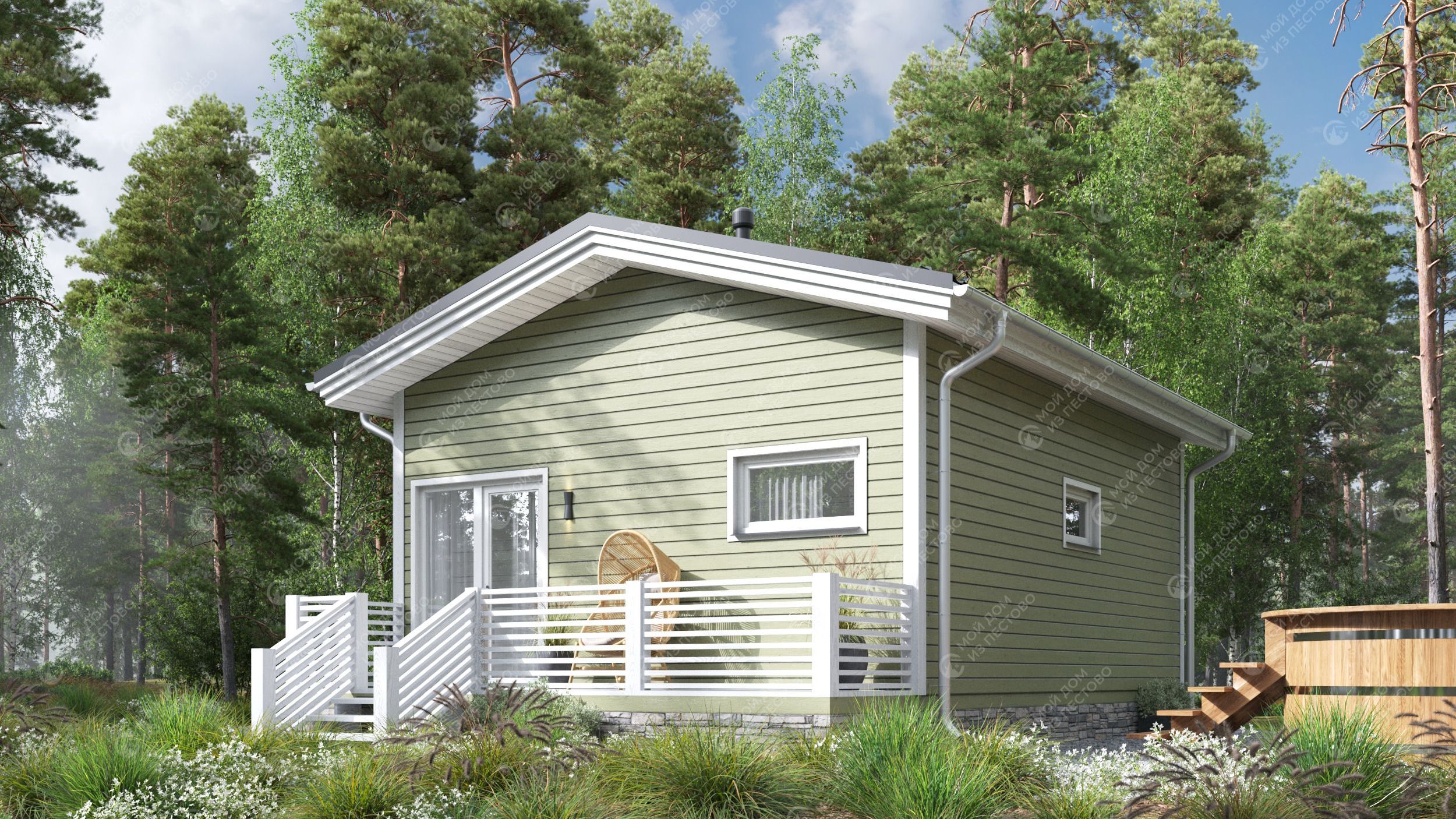 - Терраса (если предусмотрена проектом) на опорных столбах. Терраса с перилами и балясинами, плинтусы из хвойных пород древесины.