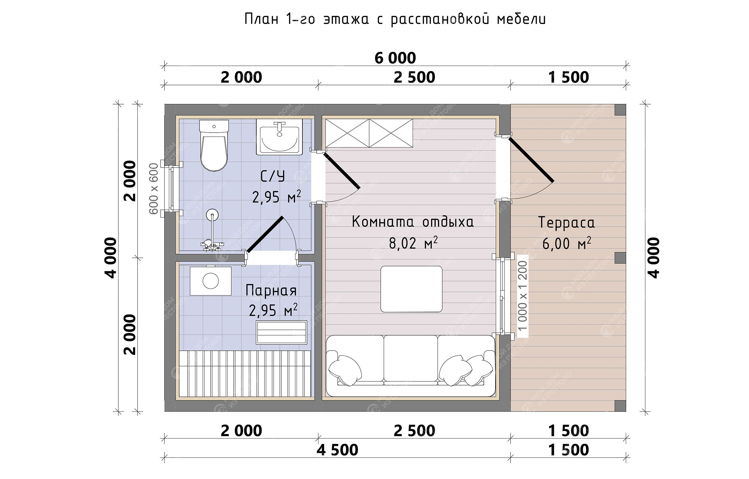 - Ступени у входных дверей и на террасе как на рисунке с общим видом, 200х40 мм.